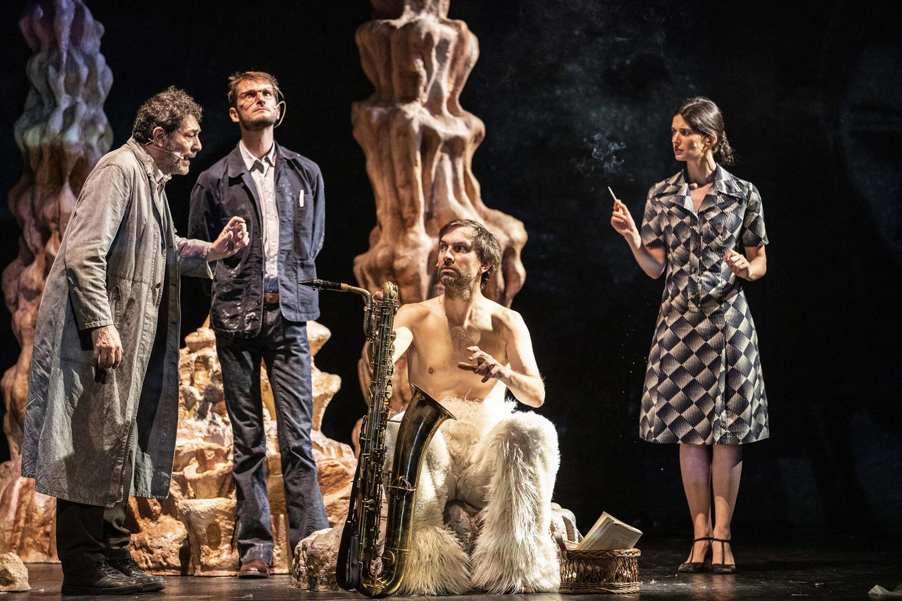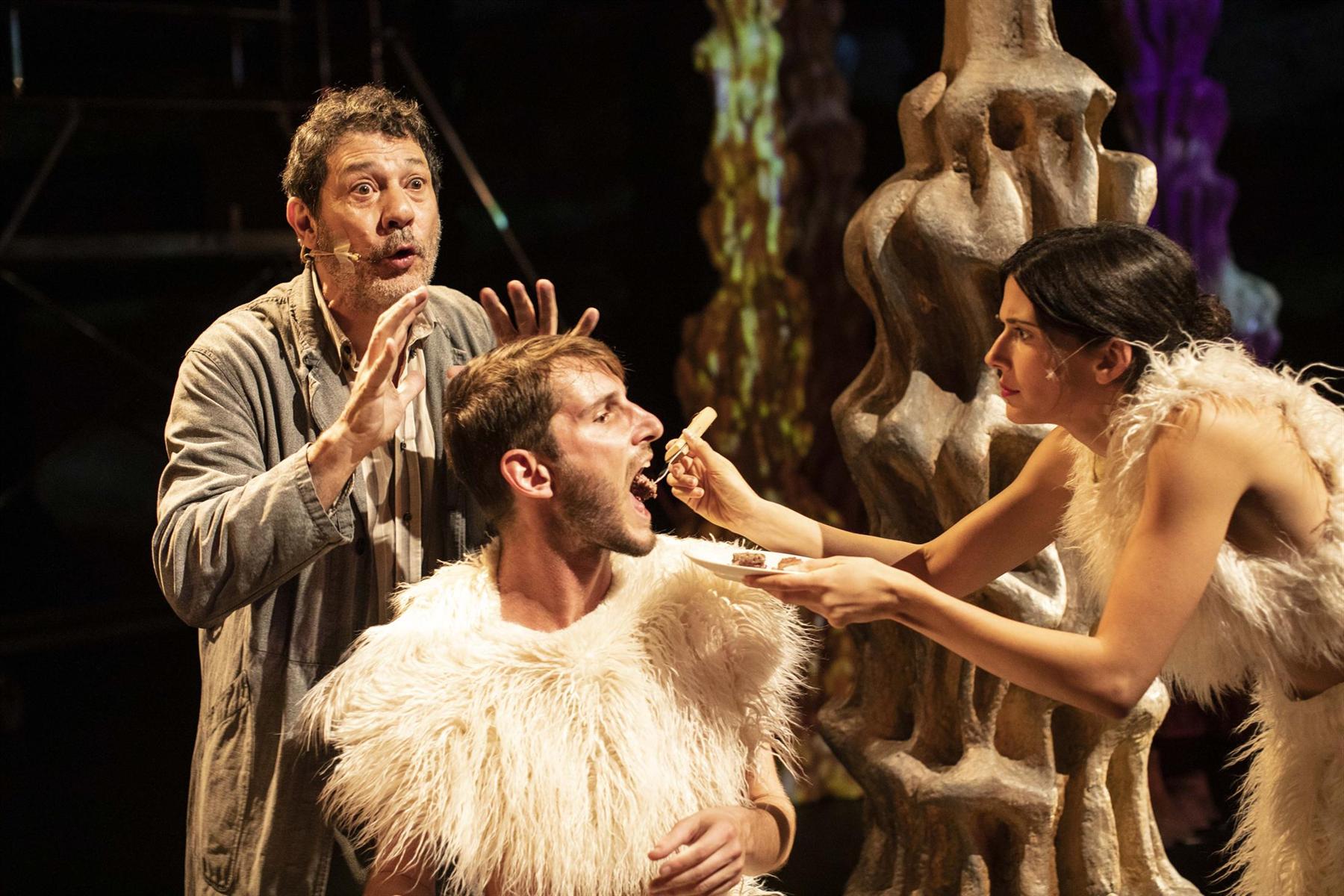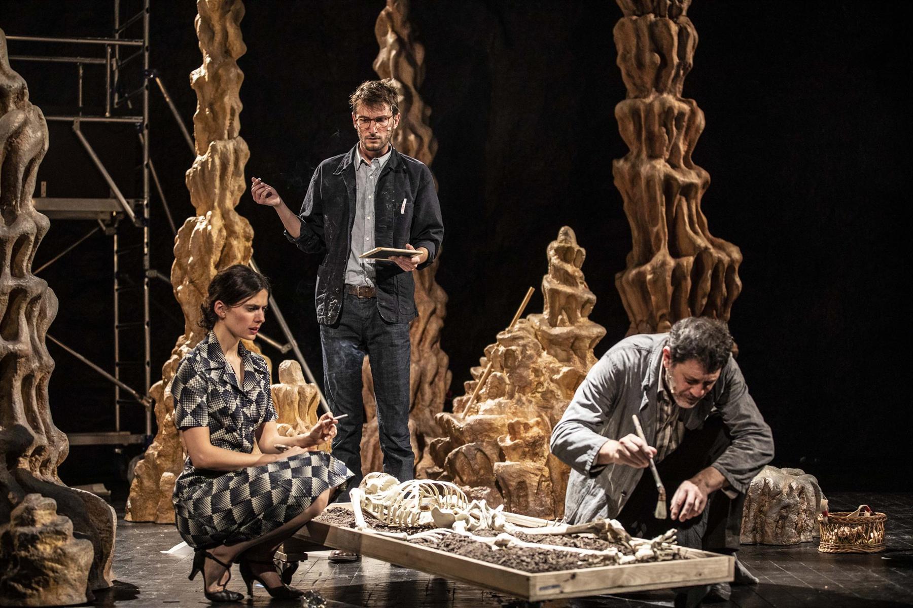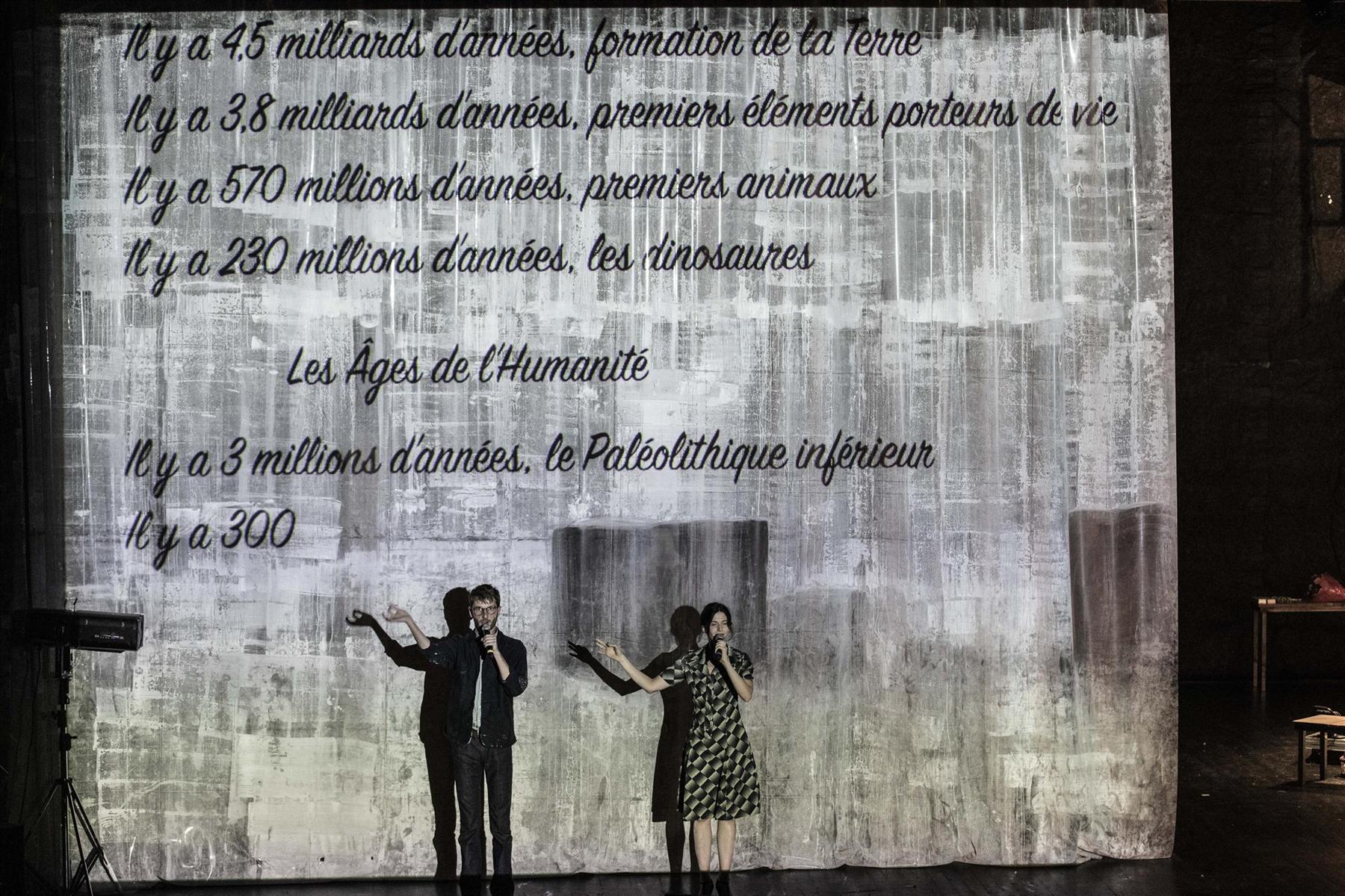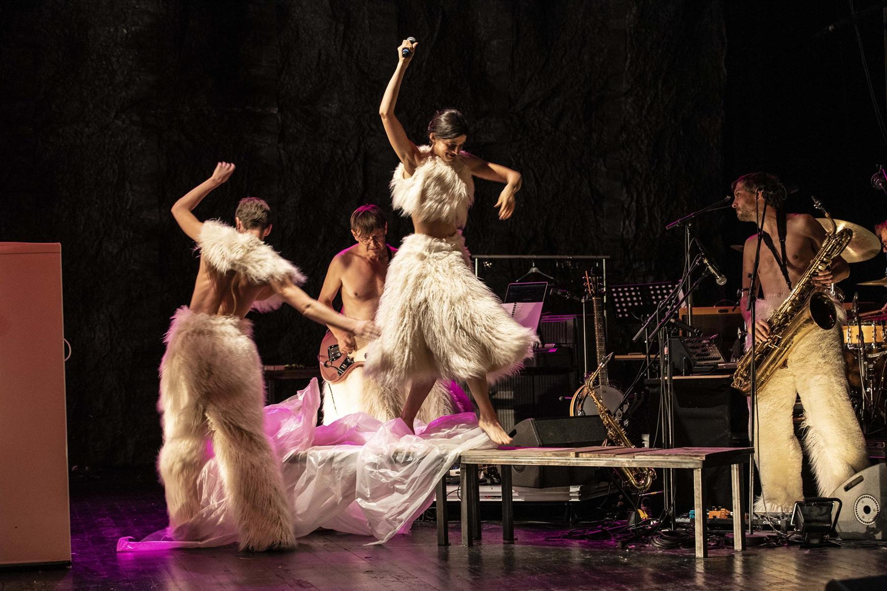 Un couple originel, une grotte, des stalagmites… nous voici ramenés au début de l’humanité. Dans Paléolithique Story, textes théoriques et mises en situation se superposent pour déjouer des mythes bien ancrés, comme ceux de la division genrée du travail entre chasseurs et cueilleuses, de la naissance de la propriété ou des inégalités sociales. Une comédie musicale surréaliste et visionnaire.