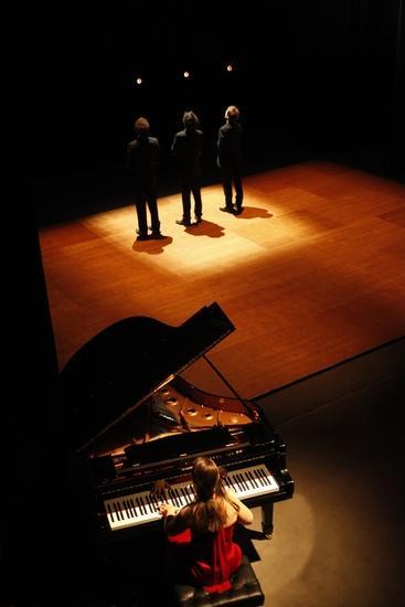 Si les jongleurs du Collectif Petit Travers viennent du cirque, ils vont bien au-delà des « numéros » traditionnels en mettant en scène leur virtuosité dans une chorégraphie à la composition originale. Ici, c’est le rythme et la ligne qui dominent, en totale correspondance avec les propositions du piano en avant-scène. Tout autant verticales qu’horizontales, les balles fusent, suspendues et aériennes, rythmiques et claquantes, dans une mécanique parfaite !
