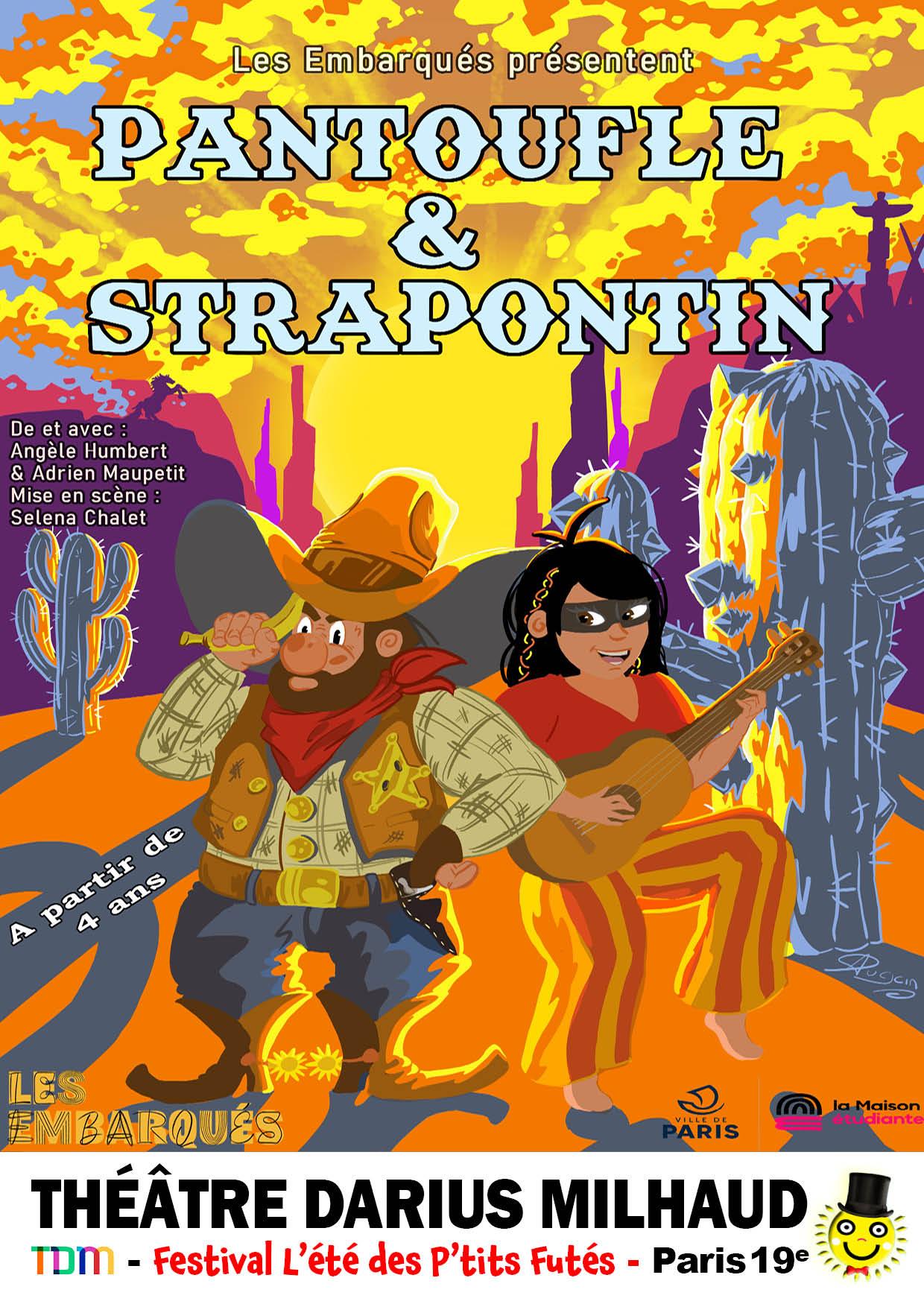 Dans cet univers burlesque et musical, les petits comme les grands vivront une expérience théâtrale pleine de rebondissements. Venez découvrir les aventures de Pantoufle et Strapontin, et laissez-vous porter par cette course-poursuite absurde qui mêle rires et délires !