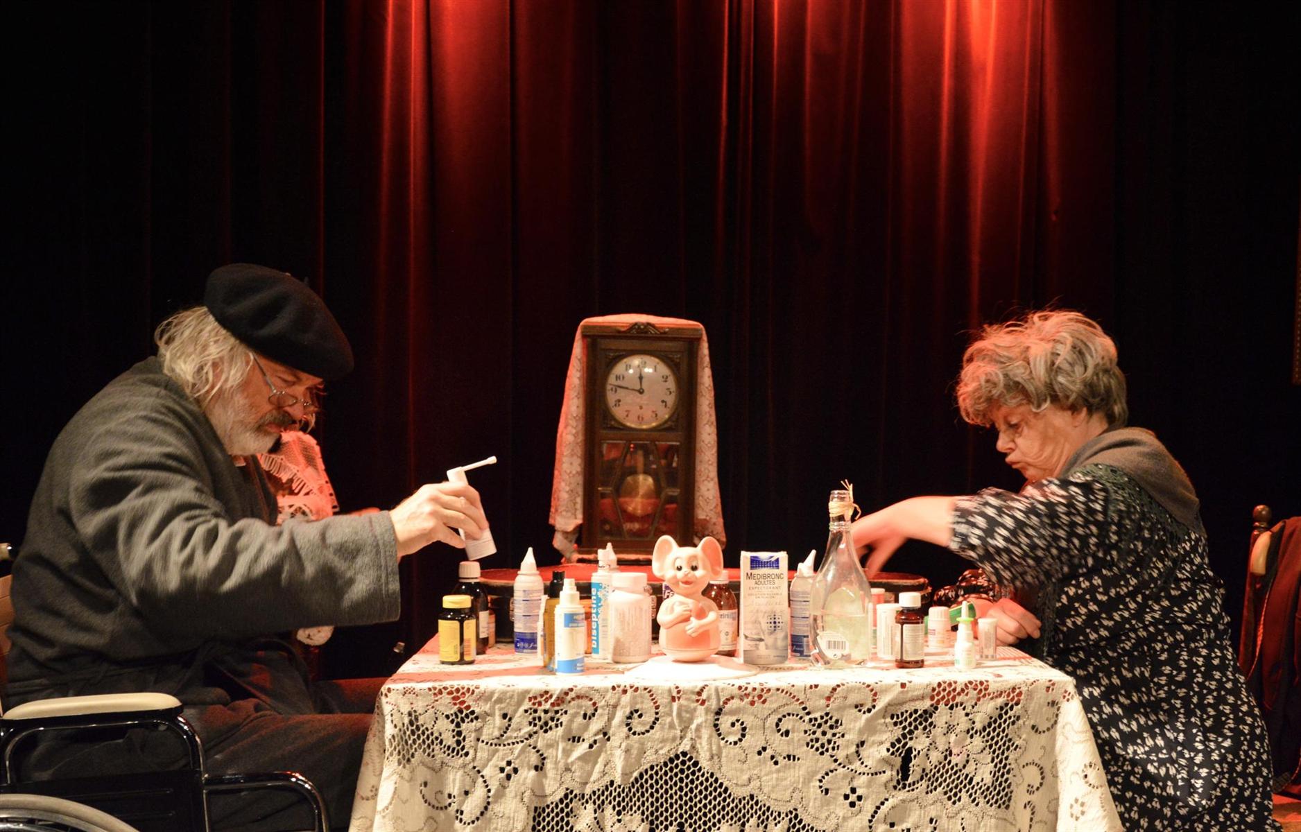 Ce spectacle, presque muet est criant de vérité... Un couple âgé qui ne se parle plus depuis longtemps, engoncé dans ses douleurs et ses indifférences... les souvenirs, endormis dans un album poussiéreux. Or voici que deux jeunes auxiliaires de vie, faisant irruption dans leur quotidien, vont leur apporter le souffle de l'existence, l'attention, le soutien et la prévenance qu'ils avaient oubliés. Ce cliché qui, parfois, est le quotidien de certains, est un regard de grande justesse, illuminé d'une grande tendresse sous-jacente.
