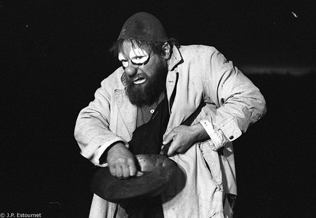 Bonaventure Gacon joue un Auguste loqueteux et provoquant. Le Boudu est une épave. Un clown méchant et qui le revendique. Mais c’est en endossant toute l’horreur du monde que le personnage de Bonaventure Gacon libère le rire. Gueule tordue, barbe foisonnante, le Boudu entre en scène, dépenaillé, fourbu, plus instable qu’une coquille de noix dans la tempête. Regardez un peu ses grands yeux lunaires, la misérable calotte de feutre gris qu’il porte sur la tête, sa souquenille, ses basques, ses pantoufles et son nez rouges. Vous l’avez compris, le Boudu est un clown qui s’appelle le Boudu. Pas un de ces clowns blancs, tyranniques et vaniteux, mais un Auguste un pauvre type, une épave. À grand peine, il s’approche d’une table de bois cent fois sauvée de la décharge publique, cent fois rafistolée. Va-t-il enfin parler ? Finalement oui, il parle. Ses mots sont pleins de trous, de vent et de honte : « C’est moi qui suis là ! (long silence), Moi, j’suis méchant... (long silence), j’suis méchant (silence) moi ! » Voilà, c’est dit. Jamais sans doute avant ce Boudu, un Auguste n’aurait osé se risquer sur la piste ou un plateau avec un tel aveu. Il aurait dit à la rigueur : j’suis con, j’suis moche, j’suis nul... Des choses dans ce genre. J’suis méchant, ça non !