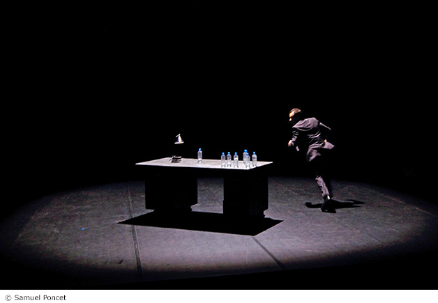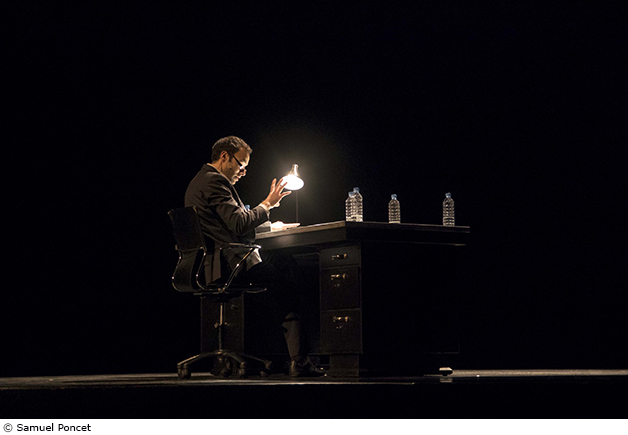 Paradoxal est un spectacle-expérience qui sème la graine du doute et donne les outils pour que le spectateur la fasse germer. Sur scène, des bouteilles se multiplient sur un bureau imposant, unique partenaire du comédien. Ce bureau est le seul point d’attache au monde mais il se refuse à dire de quel monde il s’agit, à quelle réalité il appartient.