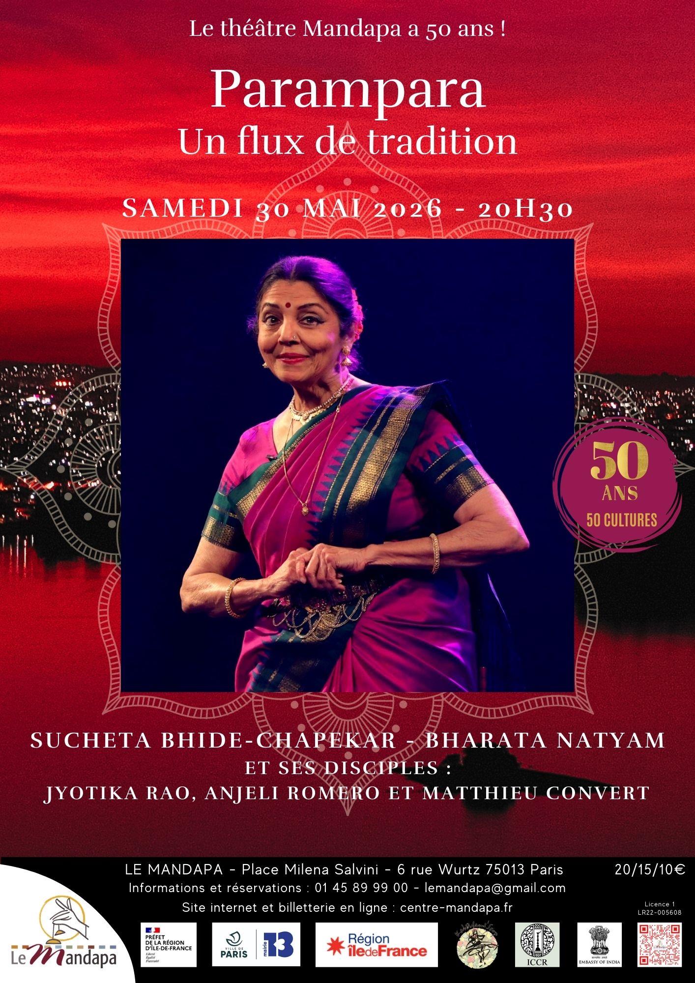 Elle dansera aux côtés de son guru, accompagnée par sa fille Anjeli Romero et Matthieu Convert, jeune danseur contemporain, pour incarner cette transmission de la danse aux jeunes générations, le Guru-Shishya parampara ou le flux de la transmission.