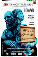 Cette pièce propose une réfléxion sur l'éternelle opposition gauche-droite qui déchirela sociéte française. Comment des gens qui ne partagent pas du tout les mêmes idées politiques peuvent-ils rester les meilleures amis du monde ? La Boétie était révolutionnaire et anarchiste. Montaigne royaliste et chrétien. Leurs écrits, souvent ironiques et brillants, fournissent la matière des dialogues et nous redécouvrons, avec surprise et jubilation, leurs disputes qui ressemblent fort à celles de notre temps. De son côté, Marie de Gournay complète ce triangle amical et amoureux en ajoutant à tout cela un brin féminisme et d'impertinence.