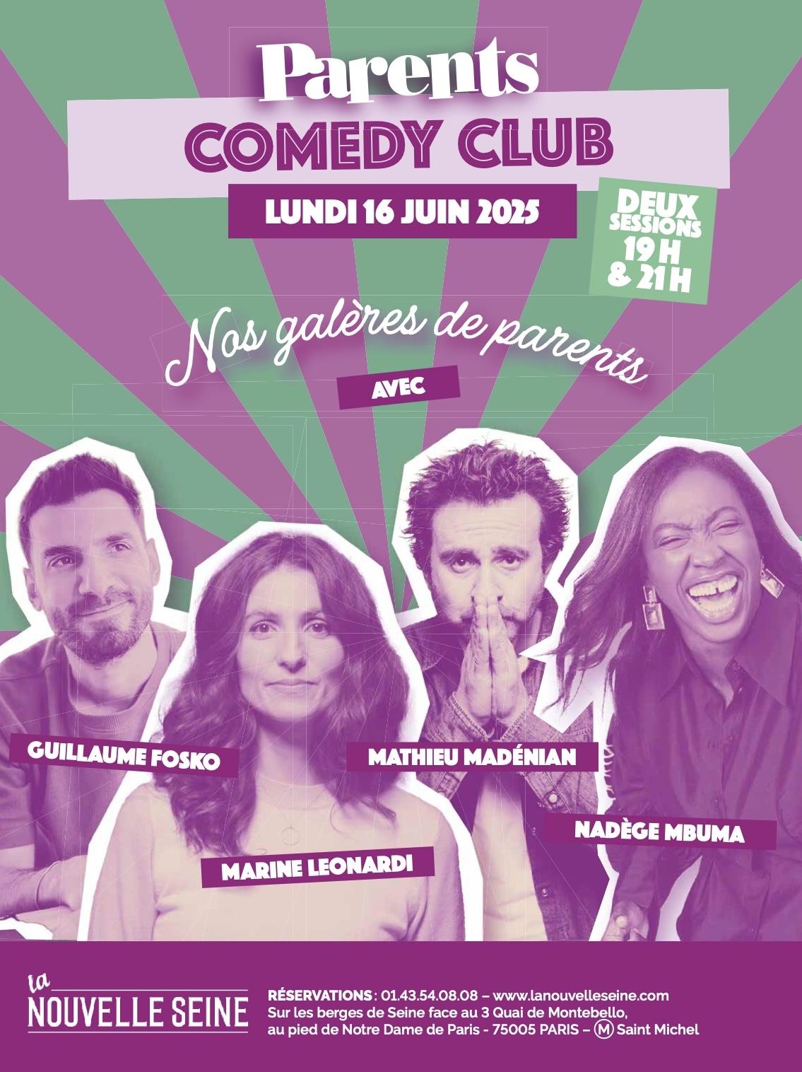 Les nuits sans sommeil, le baby clash, le post partum, leur quotidien de parents épuisés et leur vie de couple… Autorisez-vous une heure sans enfant : Parents réunit Marine Leonardi, Nadège Mbuma, Guillaume Fosko et Mathieu Madénian pour son Parents Comedy Club !