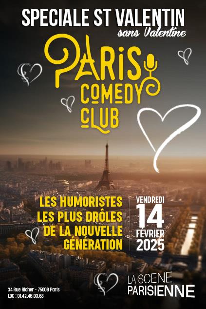 Préparez-vous à une soirée d’amour… et surtout de rires ! Le Paris Comedy Club, rendez-vous incontournable des étoiles montantes de l’humour, vous invite à célébrer la Saint-Valentin comme jamais auparavant. Que vous soyez en couple, célibataire ou « c’est compliqué », laissez-vous séduire par des talents de la nouvelle génération, prêts à vous faire fondre de rire, avec un spectacle unique et de qualité irréprochable.