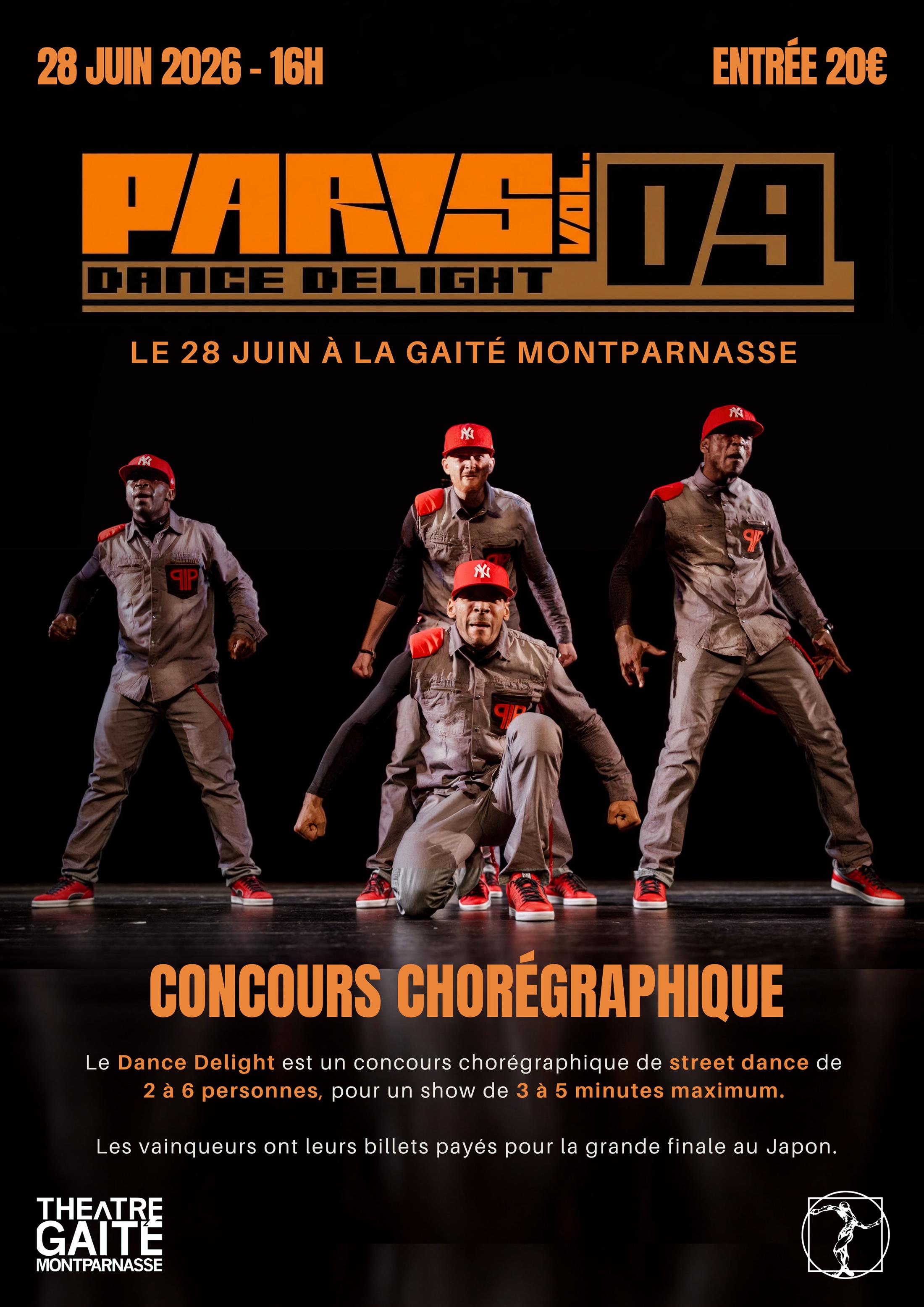 Pour la 9e fois, le Juste debout organise le Paris Dance Delight. Nombreux shows chorégraphiés de street dance, 3 à 5 minutes de show, 2 à 6 artistes sur scène Les vainqueurs auront la chance de représenter la France au Japon pour la grande finale. Un événement mythique pour un après-midi authentique.
