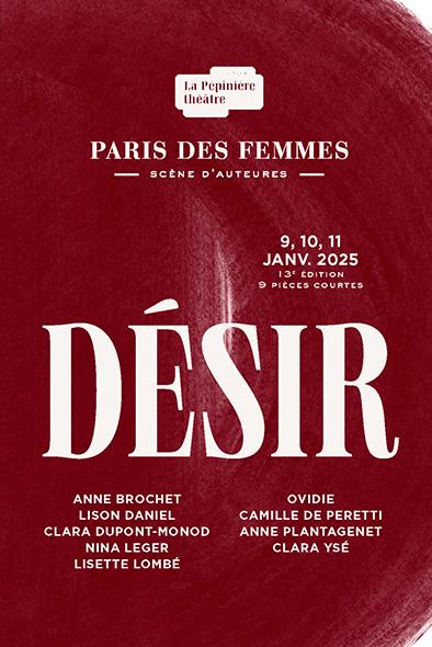 Paris des Femmes & La Pépinière théâtre présentent : Neuf pièces courtes écrites autour du thème « Désir » par les auteures, Anne Brochet, Lison Daniel, Clara Dupont-Monod, Nina Leger, Lisette Lombé, Ovidie, Camille de Peretti, Anne Plantagenet, Clara Ysé.