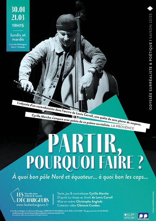 « L’odyssée d’un contrebassiste dans l’œuvre de Lewis Carroll, une quête de sens pleine de suspens. Cyrille Marche s’empare avec poésie de ce poème surréaliste. » La Provence