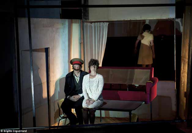 Chaque spectacle de François Tanguy est un cérémonial majestueux et énigmatique où d’immenses cadres de bois brut dansent un ballet magique, ouvrant le regard à de fabuleux tableaux, livrant à l’étonnement d’éphémères tranches de vie. Passim, du latin passim, « partout », « ça et là en différents endroits » est une grotte tapissée d’arrières pays qui nous sont familiers. On y puise sensualité, plénitude et inquiétude. Là, les ombres dévorent les silhouettes, ici, les comédiens prennent le soleil, les lumières fluctuent en douceur, au gré des chuchotis et des pas esquissés au plateau. Le plateau lui-même n’est que métamorphose. On s’y retrouve chez soi, dans un curieux et double effet d’hypnose et de conscience accrue.