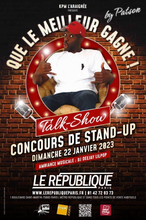 Après les Top Show, Patson lance le tout premier concours de stand up jamais connu en France. Le 22 janvier 2023 au théâtre le République, 5 participants, qui viennent de toute la France, s’affronteront en 3 rounds de différentes épreuves. Il n’en restera qu’un !
