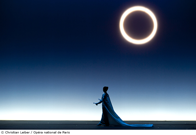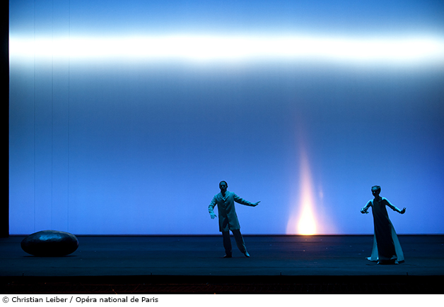 Sur le plateau épuré de Bastille, la mise en scène de Bob Wilson détoure de cernes lumineux les âmes obscures des amants, pour en fixer les négatifs sur les yeux aveuglés du public.