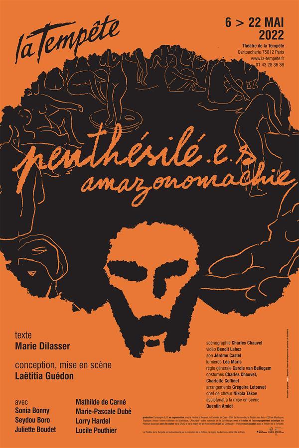 Avec la pièce Penthésilé.e.s/Amazonomachie, je veux parler du pouvoir et de la relation complexe que les femmes entretiennent avec lui. Je veux aussi parler de la puissance et des espaces de révélations qu’elle offre aux femmes : héroïnes ou simples mortelles. Penthésilé.e.s/Amazonomachie est un spectacle indiscipliné qui mêle le théâtre, la danse, la musique, le chant et la vidéo. Il se développe en deux temps. Il est séparé, fracturé, coupé en deux, à l’image de Penthésilée, qui doit sans cesse, au-delà de son amour pour Achille, trancher, prendre des décisions impossibles. Tout commence à la mort de Penthésilée. À la chute de l’héroïne.