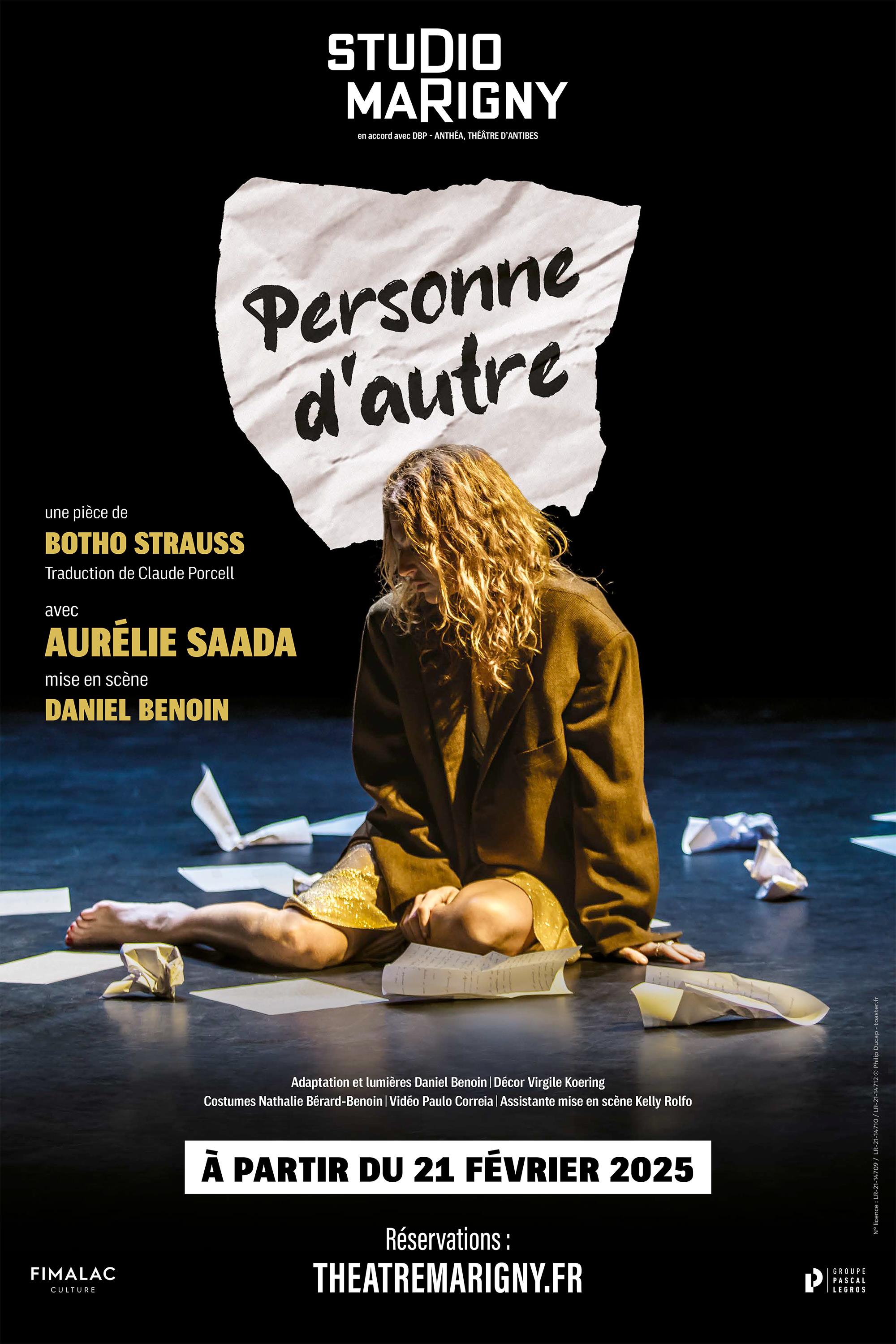 Découvrez Personne d’autre, seule en scène avec Aurélie Saada. Daniel Benoin, auteur et metteur en scène, revisite pour cette pièce le texte sublime de Botho Strauss, et explore la profondeur saisissante de l’un de ses plus beaux textes, Une lettre de mariage, extraite du recueil de nouvelles Personne d’autre, un monologue intimiste, d’une grande force et d’une grande beauté.
