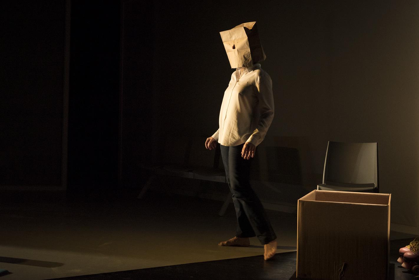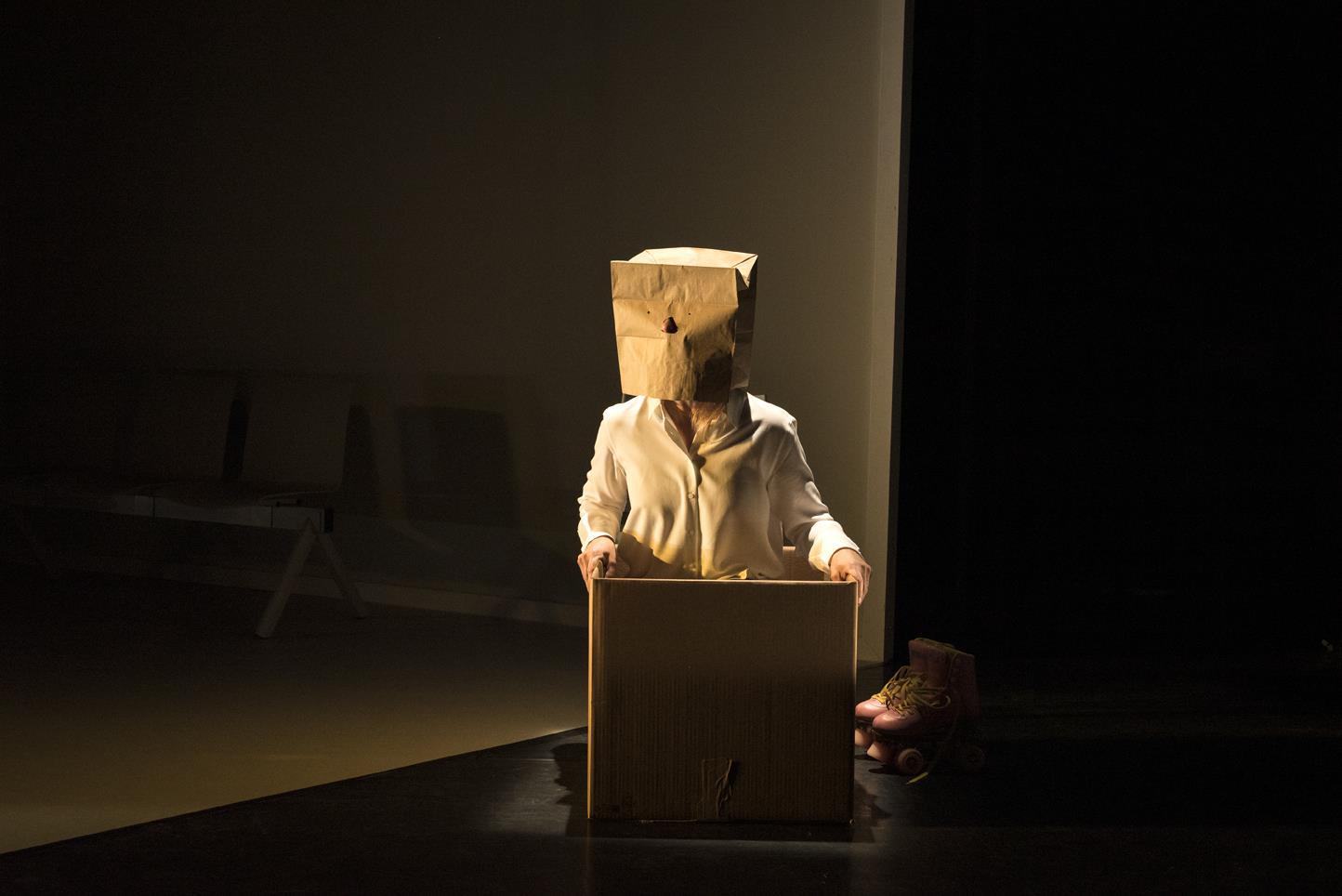 Nous avons continué à travailler l’adaptation ensemble : à haute voix. Personne est à la fois une enquête, un chant d’amour, un dialogue entre un père et sa fille, et un impossible portrait « à mettre en scène ». Une seule voix pour faire entendre le texte de la fille et celui du père : celle de Sarah, Sarah seule sur scène, qui donne une voix à ces deux langues, un corps à ces deux voix, un visage au défilé des masques.