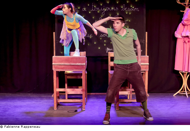 Soudain, les deux élèves se révèlent en héros, la classe se transforme et apparaissent le capitaine Crochet, les indiens, les enfants perdus. Une invitation au voyage, au rêve, racontée avec humour, panache et chansons, à la manière des enfants. Une pièce sur l’importance de l’imaginaire pour embellir et changer la réalité.