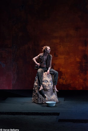 Phèdre est une partition écrite par un poète, pour les acteurs. Tout le théâtre romain a été conçu pour des acteurs-rois, de véritables “stars” qui, par la puissance de leur interprétation, donnaient au public la possibilité de voir l’invisible. Les spectateurs sont là, qui ne voient pas ce qu’ils ont sous les yeux mais ce qu’on leur raconte. Ainsi le messager se fait conteur et peintre, dans un récit aux images fantastiques, pour décrire le monstre marin surgi des eaux :