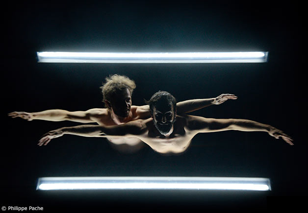 Dans un labyrinthe de lumière permettant apparition et disparition des corps et des accessoires, la relation fraternelle entre les deux danseurs prend forme pas à pas au cours d’un voyage fantastique entrepris au pays des rêves et des légendes. S’inventant des aventures, des combats, des péripéties aériennes ou sous-marines, ils mesurent leur force avec grâce et talent et sortent grandis des épreuves nées de leur imagination.