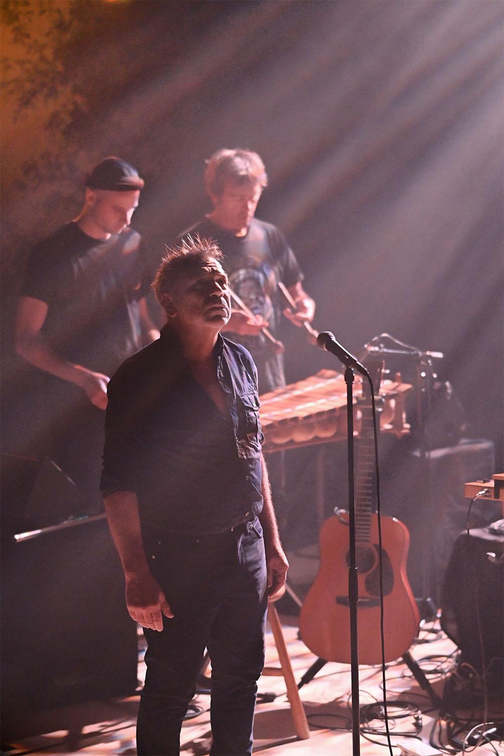 Entre musiques électro-pop et traditionnelles jouées par Richard Kolinka (batteur emblématique du groupe Téléphone) et Aristide Rosier, la voix puissante du comédien s’élève. Ce concert aux multiples influences revisite la forme du récital en abordant des thèmes qui occupent les esprits de tous les temps.