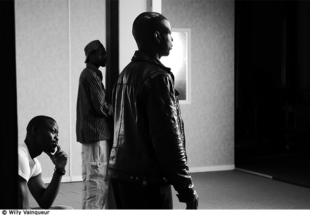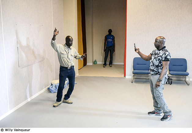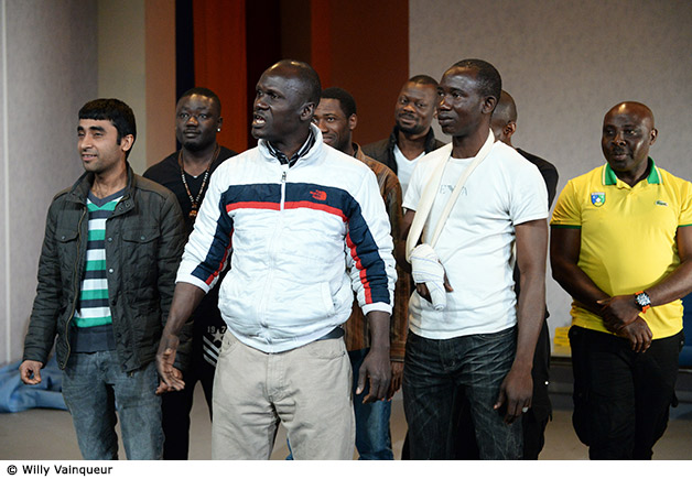 | Pièce d’actualité n°3 écrite par Olivier Coulon-Jablonka, Barbara Métais-Chastanier, Camille Plagnet mise en scène par Olivier Coulon-Jablonka / Pièce d’actualité : 81 avenue Victor Hugo / APRÈS LE FESTIVAL D'AVIGNON, REPRISE À LA COMMUNE / Le choc de la saison passée. C’est un collectif de migrants. 80. Installés avenue Victor Hugo à Aubervilliers, dans un pôle emploi désaffecté. 8 d’entre eux sont sur scène. C’est l’inouïe parole des étrangers. La terre aux routes violentes. La France qui se renie. Nos lois : honte à nous. La confiance de ces hommes venus nous parler est un honneur pour le théâtre. / Avec les pièces d’actualité, voici ce que nous cherchons : que la vie à Aubervilliers nous fasse faire un art juste. Pour cette deuxième saison, La Commune passe à nouveau commande à de grands artistes et continue de leur demander : la vie des gens d’ici, qu’est-ce qu’elle inspire à votre art ? Les pièces d’actualité, ce sont des manières nouvelles de faire du théâtre. Elles partent de la Ville d’Aubervilliers et de sa population, et disent qu’en elles se trouvera une nouvelle beauté. Mêlant parfois professionnels et amateurs, elles font du théâtre l’espace public de nos questions, elles seront suivies de débats, d’échanges et renouvelleront avec éclat, émotion et drôlerie, l’idée si belle du théâtre comme agora. / Avec Adama Bamba, Moustapha Cissé, Ibrahim Diallo, Mamadou Diomandé, Inza Koné, Souleyman S., Méité Soualiho, Mohammed Zia |