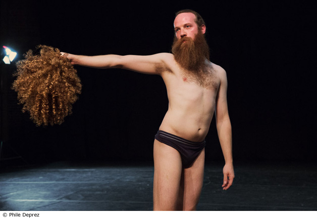 Lâchant la bride à l'étonnante apothéose d'une divinité dansante, soutenu par quelques accessoires, Pieter Ampe s'effeuille en quelques gestes. Tout sourire dans sa barbe hirsute, oscillant tendrement entre une touchante fragilité et une franche forfanterie, il offre au public une insolente et subtile partie de « flirt oculaire ». Difficile de se mettre plus à nu, sans gêner le moins du monde.