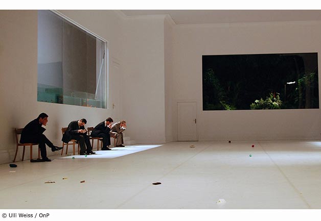 Dans un décor clos et immaculé, conçu par Peter Pabst, les interprètes s’interpellent, se croisent, se succèdent dans des séquences violentes et burlesques, cherchant ainsi à combler le vide de leur existence. Entre tragédie et dérision, souffrance et espoir, les tableaux se télescopent, laissant transpirer toute la complexité des rapports entre hommes et femmes et les contradictions de la nature humaine.