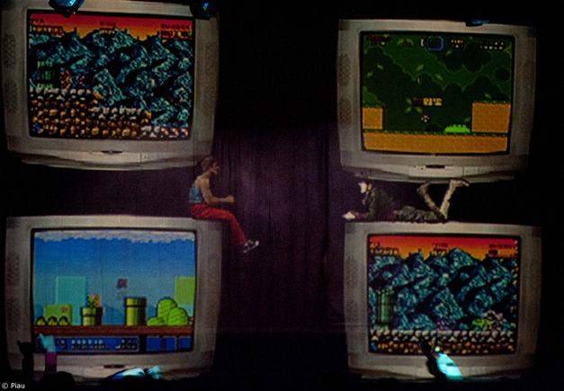 La vidéo présente dans cette pièce par bribes ponctuelles sert avant tout à évoquer le monde des jeux d'une manière moderne et actuelle.