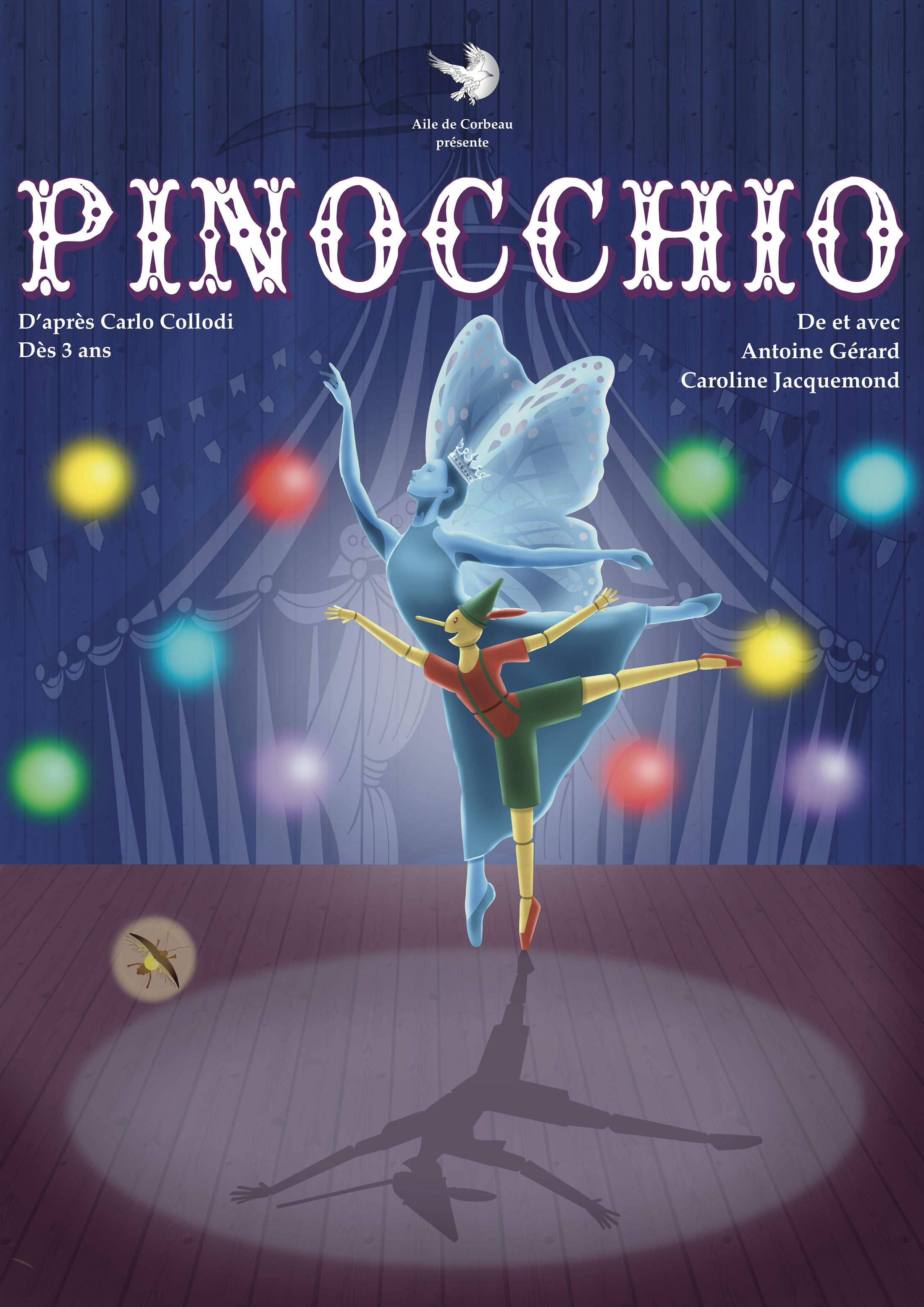 À la lueur d’une lune bleue, la marionnette Pinocchio s’éveille et s’anime. Cet enfant au corps de bois apprend à marcher et devient immédiatement curieux du monde qui l’entoure. Pas à pas, danse après danse, Pinocchio grandit au gré des lumières et des personnages hauts en couleurs qu’il rencontre.