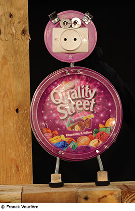 Avez-vous déjà croisé un loup-scie, un cochon quality-électrique, des lapins-pinces ou une samba-grenouille ? Faits d’objets détournés, transformés et assemblés en marionnettes gourmandes et affamées, ces drôles de personnages vont jouer au jeu du tel est pris qui croyait prendre en se piégeant à tour de rôle au fond d’un puits où, semble-t-il, le reflet de la lune se serait transformé en un alléchant fromage…