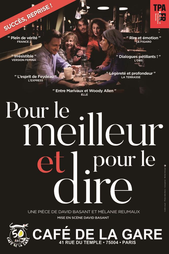 Après le Off d’Avignon, 50 dates de tournée et son triomphe pour la saison 23/24, Pour le meilleur et pour le dire revient au Café de la Gare.