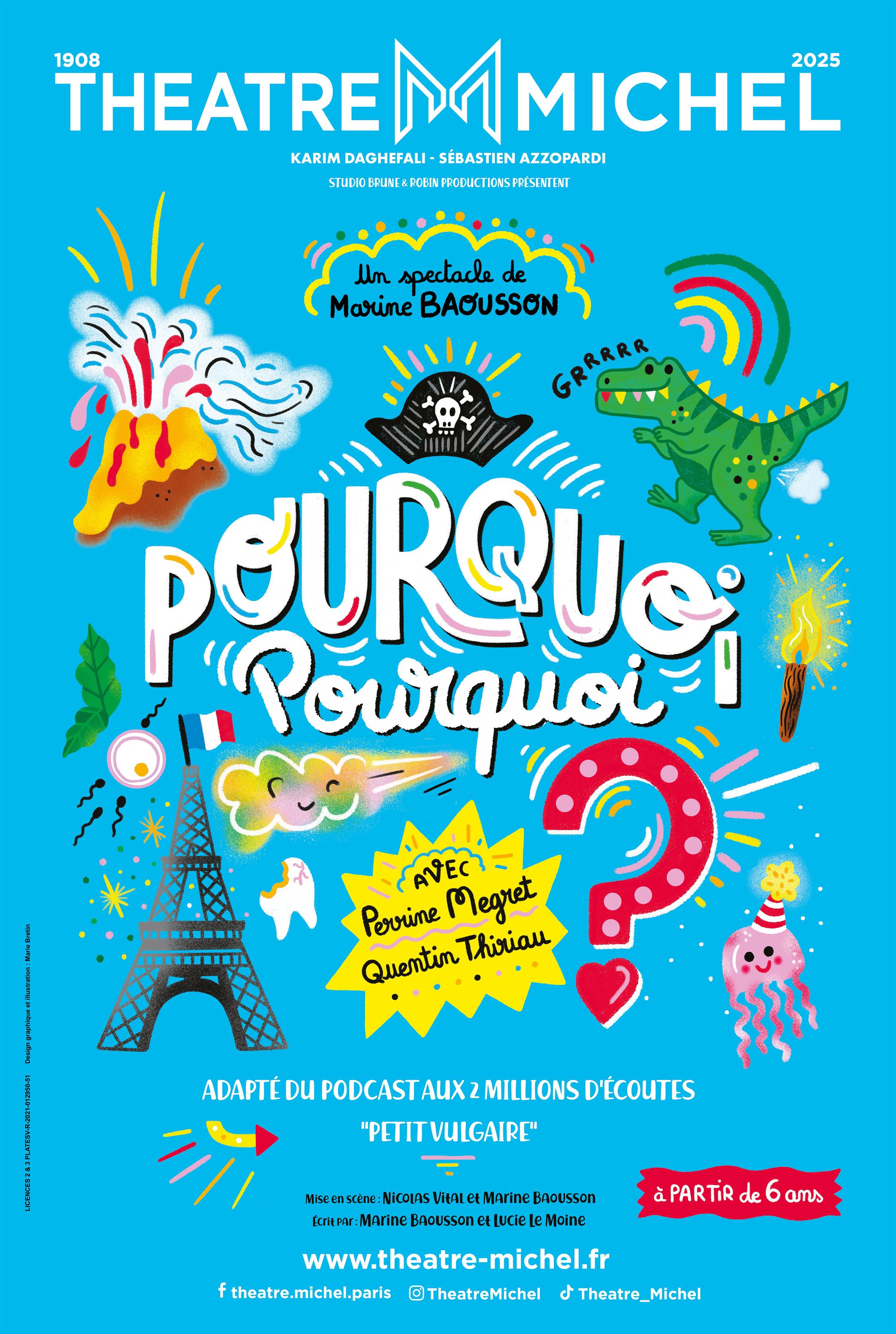 Adapté de Petit Vulgaire, le podcast de vulgarisation aux 2 millions d’écoutes, Pourquoi Pourquoi, c'est LE spectacle qui répond à toutes les questions que vos enfants vous posent, alors qu'évidemment... vous n’avez pas la réponse. À partir de 6 ans