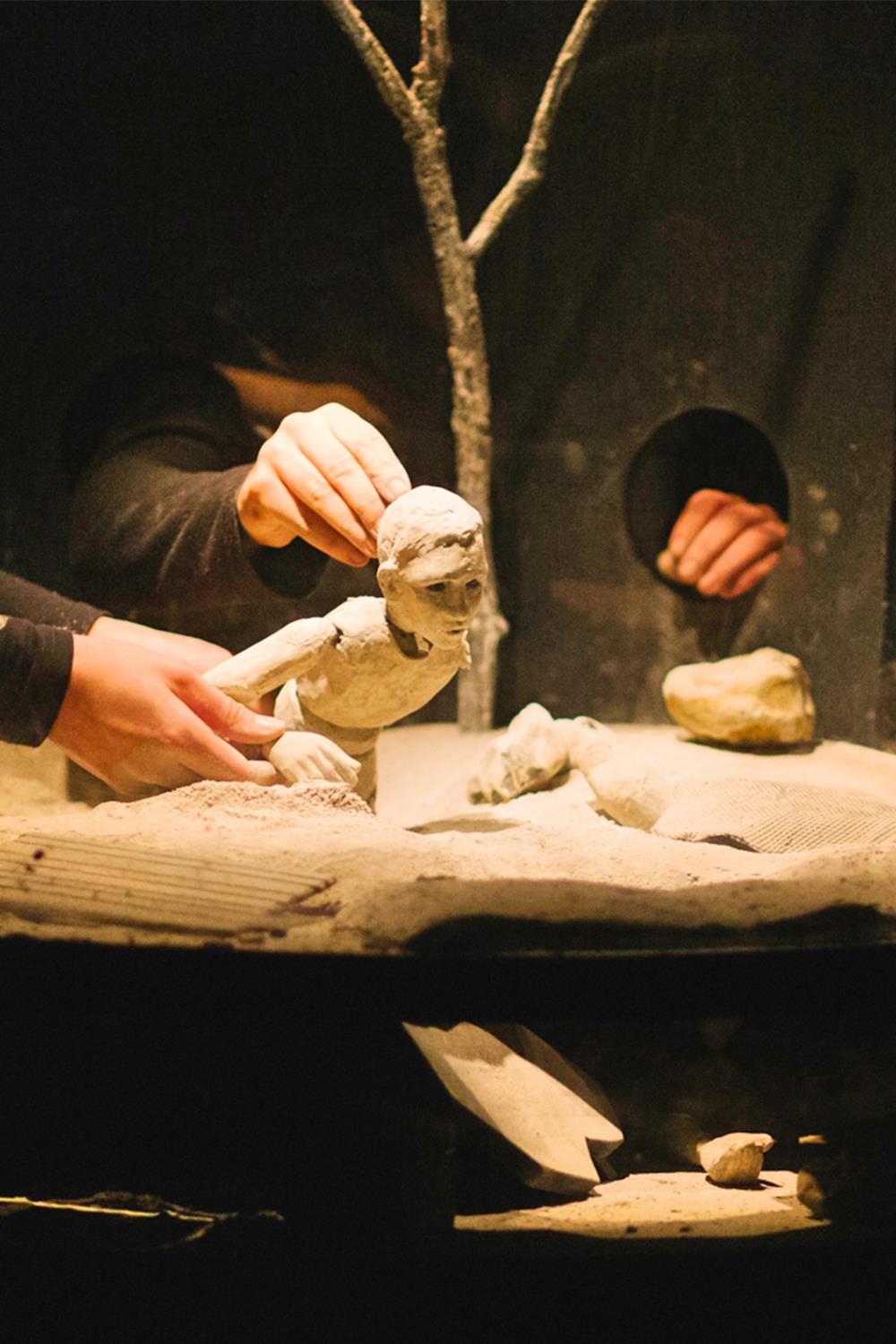 La terre tremble, une épaisse fumée blanche s’élève du sol. Quelle est cette explosion digne d’une éruption volcanique ou atomique ? La poussière a envahi l’espace, et l’univers n’est plus que décombres. Que reste-t-il de la vie au milieu de ce chaos ? Une créature fragmentée renaît des décombres, point de départ pour tout reconstruire. À partir de 9 ans