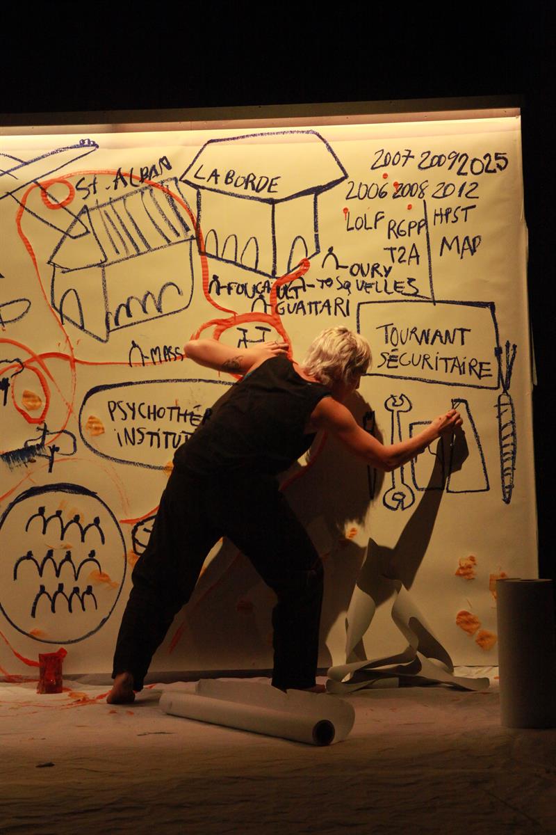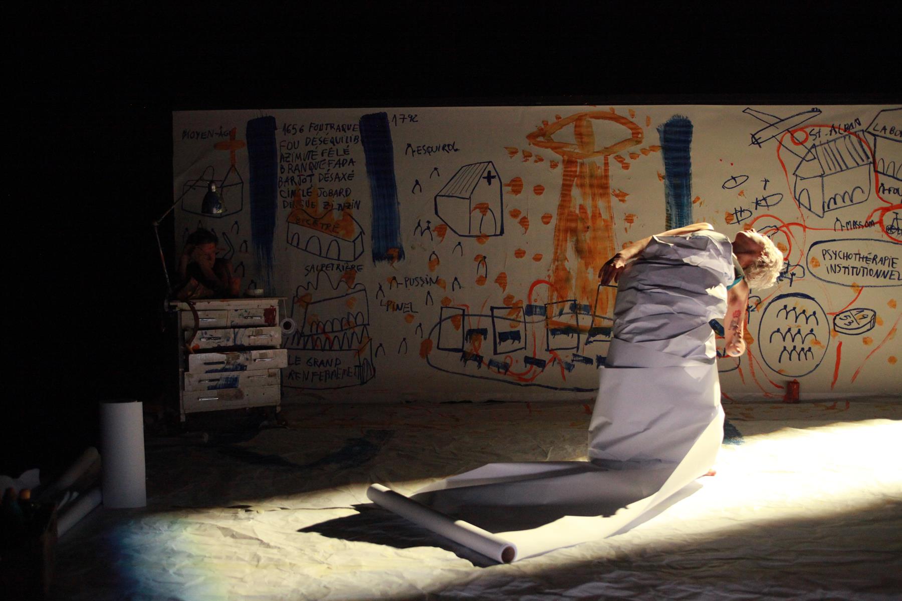 Le sujet est ardu : le service public de psychiatrie; la forme est originale, qui tient du théâtre, de la fausse conférence, de l’art de la marionnette et de la performance plastique. Cette compagnie a un message à faire passer; il est engagé et intéressant. Le spectacle est polymorphe, avec d’étonnantes marionnettes de papier plié et froissé réalisées sous nos yeux et un étonnant happening à base de peinture. C’est polymorphe mais pas décousu, parfois juste manquant un peu de rythme mais valant assurément d’être découvert.