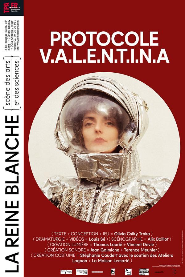 Solo sur le vertige de la conquête spatiale et de l’émigration, Protocole V.A.L.E.N.T.I.N.A est aussi une aventure dans le désert martien. Née en Slovaquie, Olivia Csiky Trnka est fascinée par l’Espace depuis sa rencontre avec Valentina Terechkova. Lauréate d’une bourse du Centre National d’Études Spatiales, elle nous emporte avec sa délicate absurdité dans son entraînement pour la prochaine Mission Transdisciplinaire de Simulation des Conditions de vie martiennes. Puis la performance devient film, commenté par notre astronaute depuis le futur. Mais qu’a-t-elle vraiment ramené de Mars ?