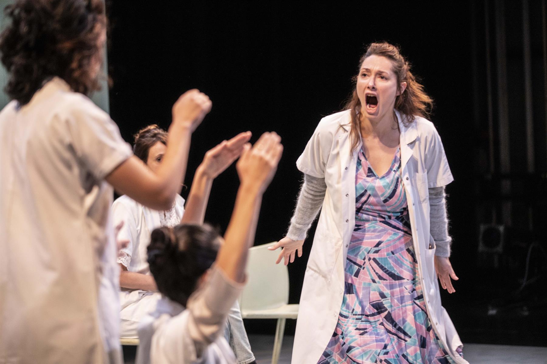 À partir de recherches de terrain et d’inspirations personnelles, six comédiennes incarnent tour à tour les soignantes et les patientes d’un centre psychiatrique. Alors que le budget est réduit, elles tentent de sauver la pratique thérapeutique du psychodrame.
