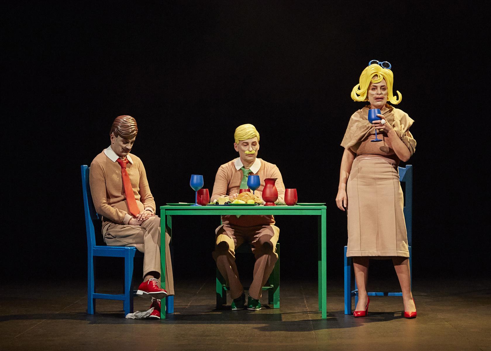 Dans une mise en scène riche en inventivité plastique faite de transformations à vue et de costumes signés Carole Allemand, se déploie une galerie de personnages tout aussi démesurés que désarmants de tendresse, en proie à leurs angoisses existentielles.