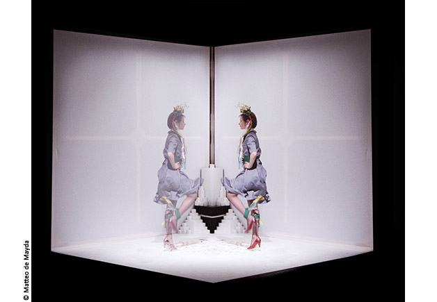 En convoquant le regard du spectateur, c’est sensiblement ce que fait Silvia Costa. Dans un espace, un cube scindé en deux, les acteurs jouent dos au public. On ne voit pas leurs visages, ils sont fuyants, flous. On les imagine comme on le fait en lisant un roman. Très attachée à la relation entre le son et l’image esthétique qui arrête le regard du spectateur, la metteur en scène a écrit un texte qui de la même façon est vague, avec des mots familiers que chacun peut interpréter. Silvia Costa trace des lignes, des possibilités de point de vue, ne négligeant aucun détail. Son indéfinité revendiquée comme une donnée dramaturgique l’oblige à une extrême précision.