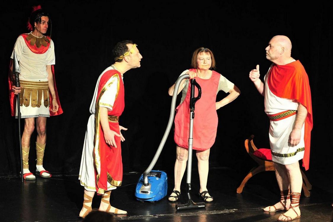 Cette joyeuse "loufoquerie" nous entraîne dans une relecture "croquignolesque" de l'interprétation d'un drame antique romain. C'est déjanté et iconoclaste au possible et le public rit de bon cœur à l'audition des répliques "parfois aménagées". Toute la troupe apporte sa bonne humeur dans ces jeux de scènes loufoques et, parfois, approximatifs.
