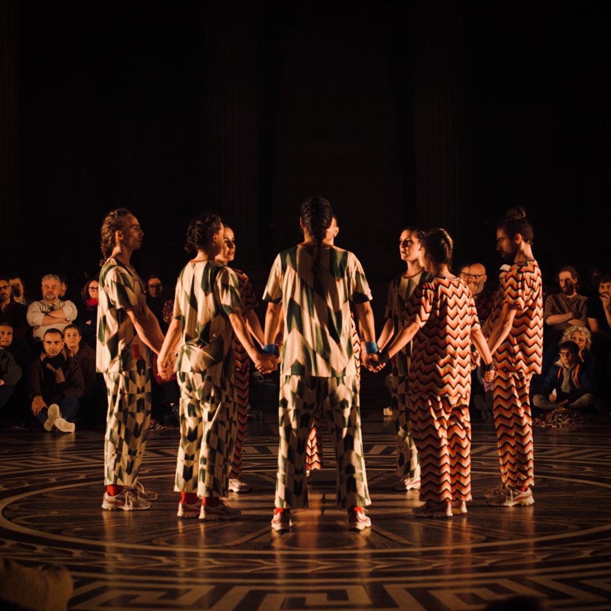 La ronde, qui rappelle autant la forme et la trajectoire des astres que le cycle temporel des saisons, invite ses participants à s’unir dans un rituel familier et entraînant. Cette répétition hypnotique peut même aller jusqu’à produire un état de transe. Inclusive par excellence, elle questionne le rapport de l’individu au groupe, la circularité du geste établissant un partage immédiat de regards, de rythmes et de mouvements.