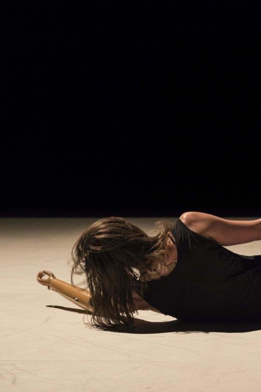 Créée en 2019, la pièce s’inscrit dans un dispositif épuré, sans décor, tendant à concentrer l’attention au maximum sur la danse en action et permettant ainsi d’en percevoir au mieux toutes les modulations. Elle se compose de deux soli de durée égale, interprétés par deux complices de longue date du chorégraphe. Premier en scène, Ruben Sanchez évolue avec une extrême agilité vibratoire sur une grande planche rectangulaire posée à terre. Tapant le sol de ses pieds (cé)lestes, frappant son corps avec ses mains, ce colosse aux semelles de vent génère une partition organique très percussive. Lui succède Annie Hanauer. Faisant corps tout du long avec la musique, traversant la lumière, semblant parfois à peine toucher terre, celle-ci déploie une danse virevoltante et chatoyante, ponctuée de moments épiphaniques, dont la fluidité n’a d’égale que l’expressivité. Riche en émotions, tendu vers l’horizon de la transe, l’ensemble se révèle absolument palpitant.