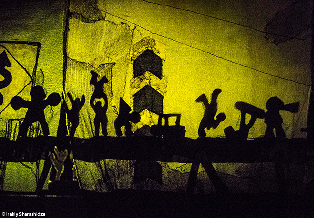 C’est sur scène que convergent tous ses talents. Ce « Gepetto géorgien » sculpte ses marionnettes, peint ses décors, écrit ses scénarios et les met en scène lui-même. Il crée un monde à son image, simple et baroque, moral et drôle.
