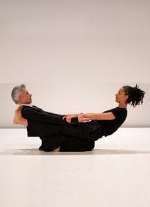 Raphaëlle Delaunay et Jacques Gamblin sont respectivement R. et J., et quelques ferments de fiction nourrissent leur ronde de gestes et de mots : lui a travaillé toute sa vie dans l’aéronautique et dispose désormais de tout son temps et de son corps, sans nécessairement savoir qu’en faire ; elle est précisément professeure de corps, goûte la solitude qu’induit pour elle la pratique quotidienne de la danse. Ces deux-là ont tout à inventer, des liens à tisser, une place à trouver dans un espace commun.