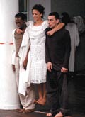 Toujours pour parler de syncrétisme et brouiller les pistes des classifications ethniques, l’assimilation des danses de cour telles que le menuet et la contredanse dans les traditions africaines des paysans d’Haïti et du Cap Vert sera également racontée et retraduite. […] plus qu’une imitation servile, une parodie cocasse des danses des colons blanc, la contredanse est devenue une contre-culture, la forme ludique et ironique qu’ont trouvée les haïtiens pour intégrer ce qui leur était hostile ou étranger […] Une galerie de personnages et d’images émergent les uns après les autres, créant ainsi l’illusion d’une masse. Illusion rendue possible par la versatilité des trois seuls interprètes.