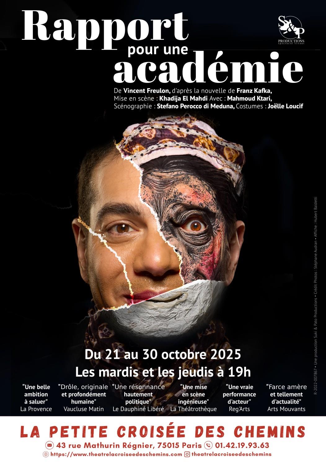 Ce texte de Kafka pourrait sembler provocateur - un simiesque distingué faisant un discours élégant devant un parterre d'humains médusés - mais, en fait, incite à la réflexion. Humanité? Animalité ? une évolution bien proche dont les frontières peuvent sembler très ténues. Il convient de saluer l'excellente interprétation de Mahmoud Ktari intelligemment mis en scène par Khadija El Mahdi et vêtu avec "distinction" par Judikaël.