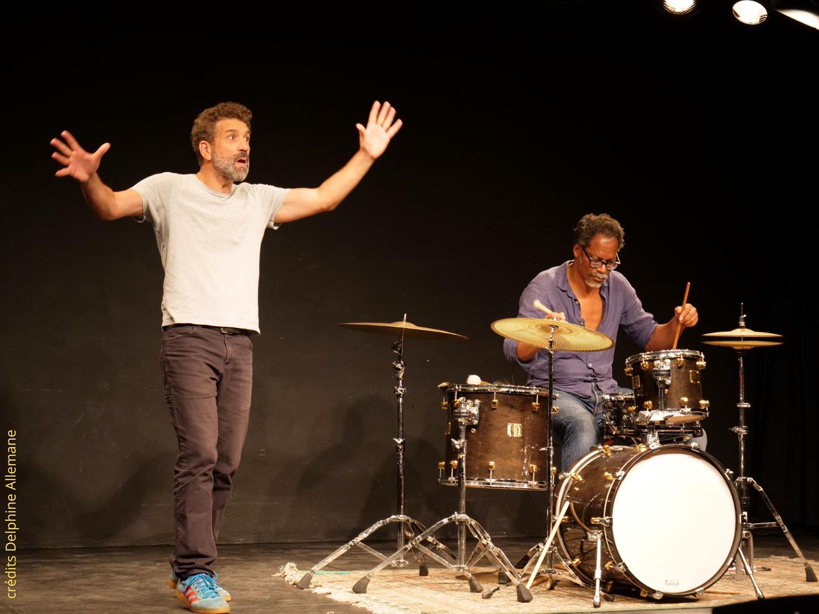 David Mandineau incarne cet auteur à l’ambition démesurée, avec à ses côtés le batteur Erick Borelva.