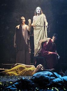 Conçue en deux parties, cette pièce bascule de la farce tragique à la ruine poétique, du rire aux larmes, du profane au sacré, de l’idéal grec à la réalité crue. Tout cela dans une tentative de démêler les mécanismes de la violence, du déni et de la reconstruction. De donner une place au regard de cette femme, qui, en l’absence d’un héros capable de la regarder dans les yeux, de confronter son histoire, décide peut-être de briser le cercle et de se regarder… elle-même.