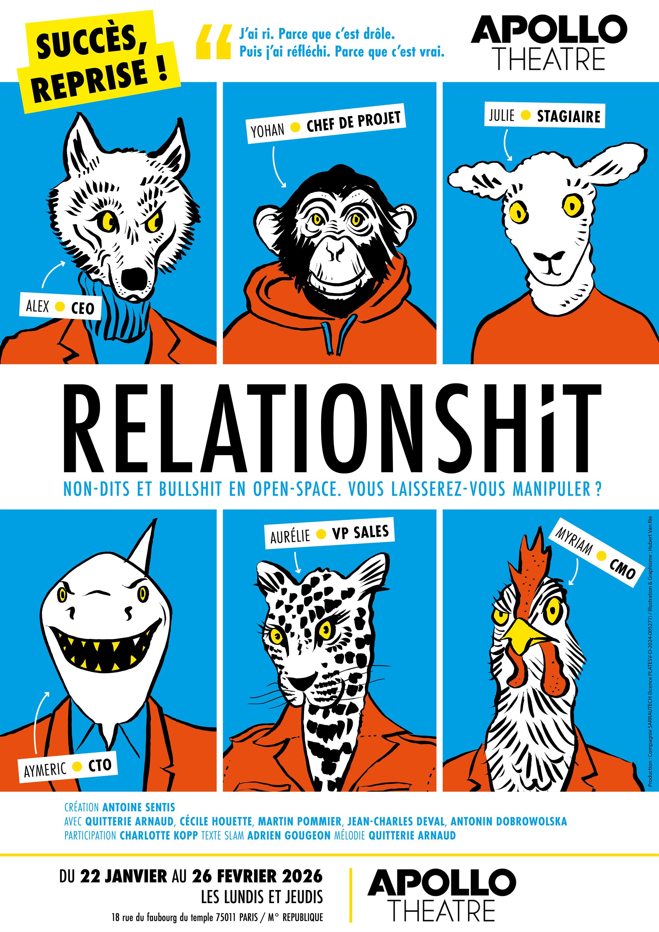 Décryptage fun du monde de l'entreprise. On a tous rencontré ces collègues-là une fois dans sa vie… et on les a fuis ! Belle interprétation des petits travers de chacun au boulot ! Super moment !