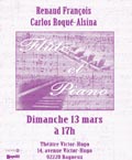 Les deux grands musiciens Carlos Roqué Alsina et Renaud François, Directeur du conservatoire de Bagneux, ont décidé d'unir leur talent pour réaliser des programmes qui associent la musique du répertoire à la musique contemporaine dans un souci d'équilibre, de diversité et de qualité musicale des oeuvres.