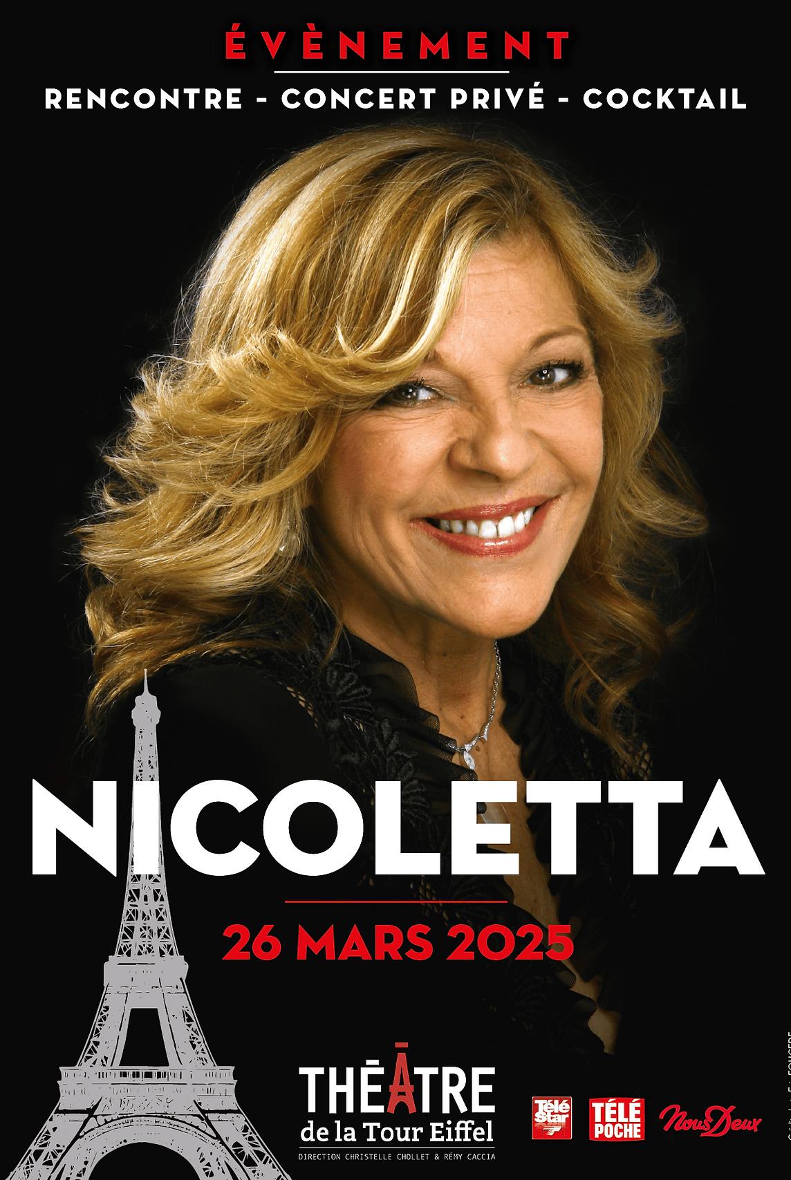 Venez rencontrer et échanger avec Nicoletta, chanteuse à la voix d’or et aux 20 millions de disques vendus, durant un après-midi exceptionnel, le 26 mars. Sur scène, Nicoletta reviendra sur son parcours, ses coups de coeur, ses rencontres dans un dialogue animé par les journalistes de Télé Star, Télé Poche et Nous Deux.