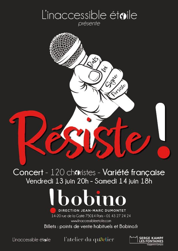 L'Inaccessible étoile présente Résiste !, un concert de variété francophone avec 120 choristes sur scène.